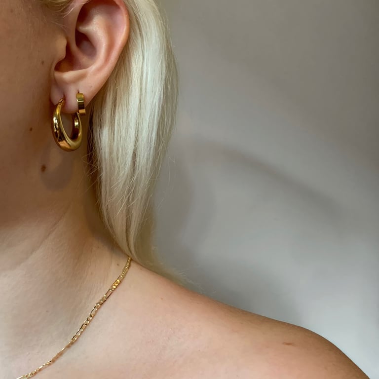 A pair of classic hoops with a sleek design that will always make a statement. The Paris hoops carry themselves worn alone or you can pair them with the Paris huggies and Paris chain to complete your bold look.
